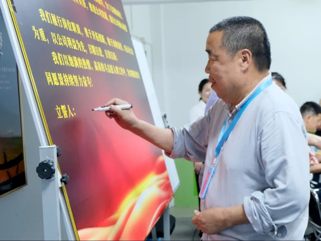 會上,萬總為項目老師頒發(fā)了授權(quán)書和聘書,帶領(lǐng)項目關(guān)鍵人員在誓詞上簽字并集體宣誓,鼓勵大家和公司共同成長進(jìn)步。